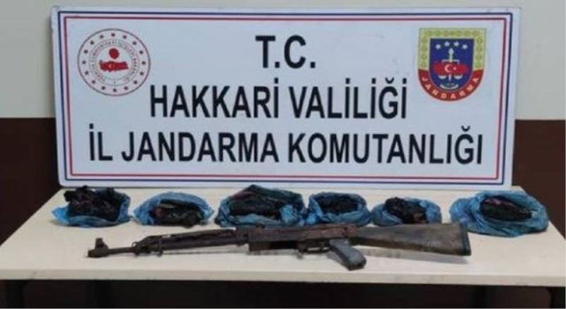 Ekiplerin gerçekleştirdiği operasyonda Yüksekova ilçesinde araziye gömülü 4 kilo 400 gram eroin ve silah bulundu.