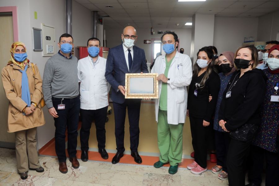Başkan V. Aydın’ı YYÜ Dursun Odabaş Tıp Merkezi Başhekimi Doç.Dr. Ümit Haluk İliklerden, Medikal Onkoloji Ana Bilim Dalı Üyeleri Prof. Dr. Ramazan Esen ile Dr. Öğr. Üyesi Umut Çakıroğlu karşıladı.