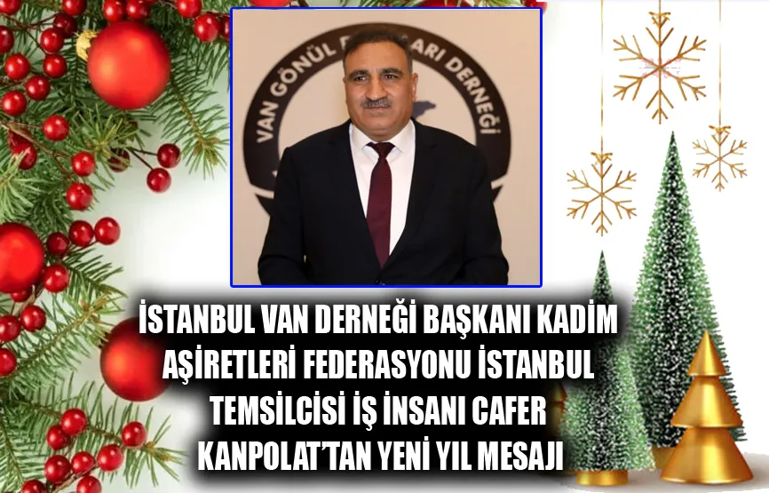 İstanbul Van Derneği Başkanı Kadim Aşiretleri Federasyonu İstanbul Temsilcisi İş İnsanı Cafer Kanpolat mesajında, “Yeni yılın dünyaya barış, insanlığa sağlık, toplumumuza kardeşlik ve dayanışma getirmesini temenni ediyorum. Sevginin, hoşgörünün ve ortak değerlerimizin daha da güçlendiği; umutların yeşerdiği, yüzlerin güldüğü bir yıl olmasını diliyorum. Birlik ve beraberlik içinde, daha güzel yarınlara ulaşmak dileğiyle; yeni yılın ülkemize ve tüm insanlığa hayırlar getirmesini temenni eder, sağlık ve mutluluk dolu bir yıl dilerim” ifadelerine yer verdi.