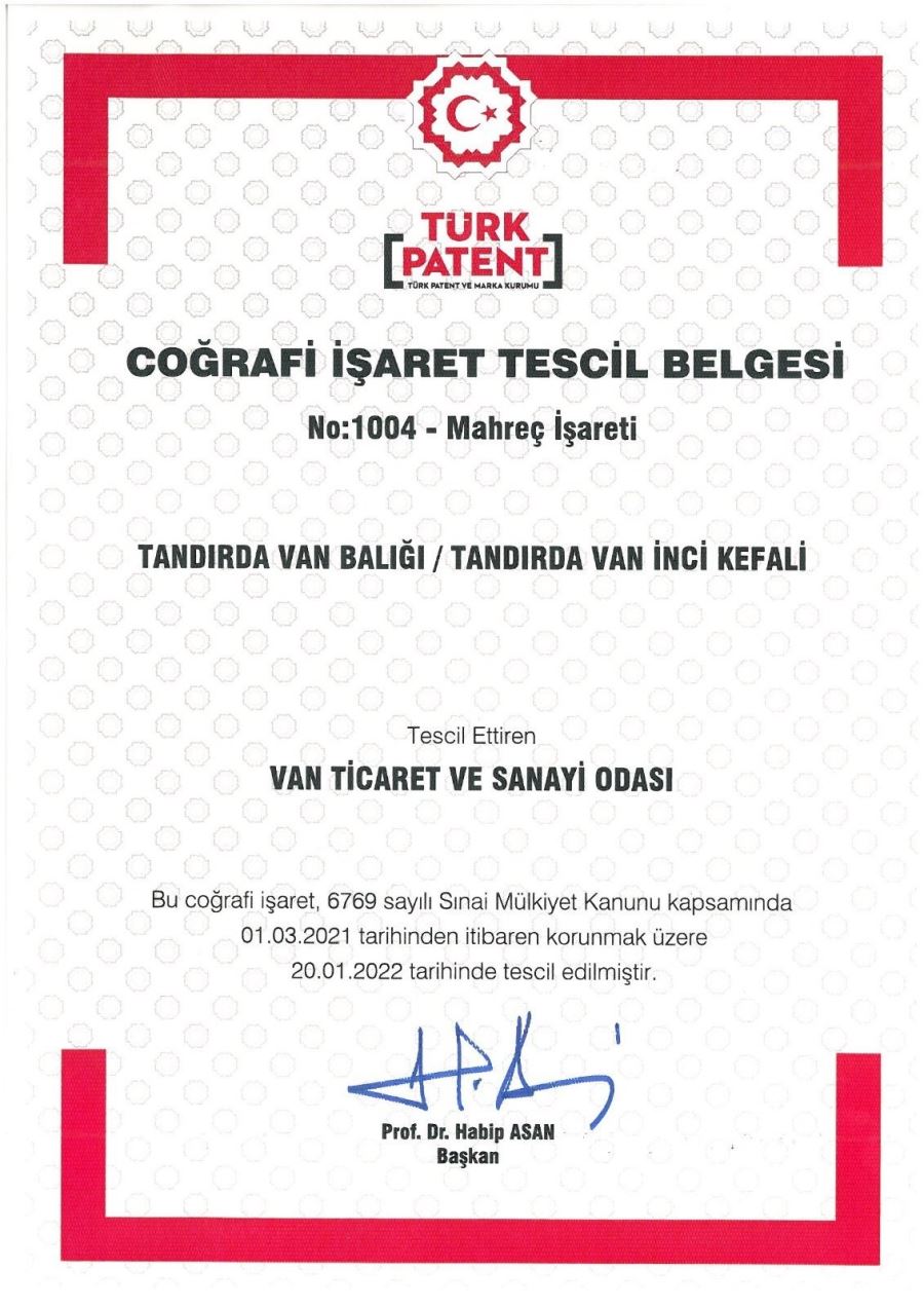 Sadece Van Gölü'nde yaşayan, 15 Nisan ile 15 Temmuz tarihlerinde üremek için suyun akışının tersine yüzerek tatlı sulara göç eden Van Balığı, bu özelliğiyle de farklı ve ön plana çıkan bir tür. Bu denli önemli ve sofraların vazgeçilmez besin kaynağı olan Van Balığı’nın coğrafi işaret tescili Van Ticaret ve Sanayi Odası (Van TSO) tarafından yapıldı.
