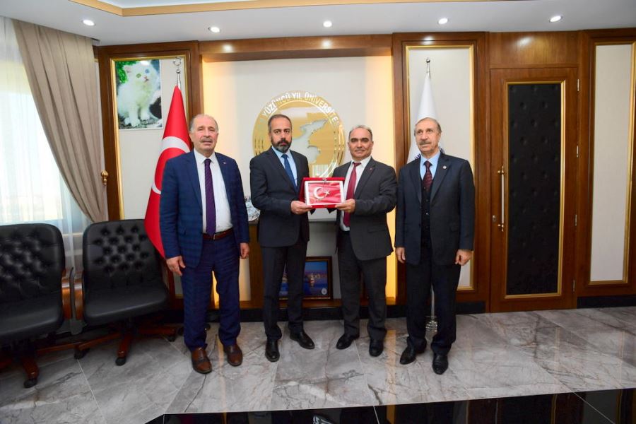 Türkiye İşçi Sendikaları Konfederasyonuna bağlı Türkiye Sağlık İşçileri Sendikası (Sağlık-İş) Genel Başkan Yardımcısı Osman Çavuş ve Genel Sekreteri Doğan Alıç ile beraberindeki heyet, Üniversitemiz Rektörü Prof. Dr. Hamdullah Şevliyi makamında ziyaret etti.