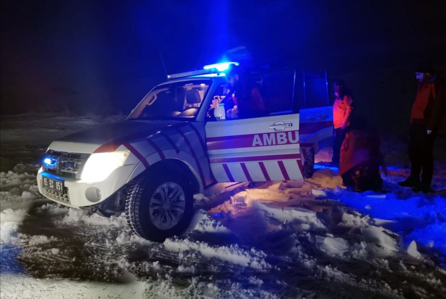 Boğazına kemik takılan 60 yaşındaki Perihan İpek için seferber olan karla mücadele ekipleri, 5 saatlik zorlu bir çalışma sonunda sağlık ekiplerini yaşlı kadına ulaştırdı.